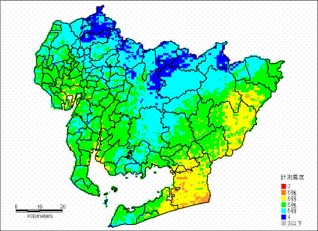 知県東部は震源に近いため、震度5強であっても、震度6弱に近い可能性があることに注意