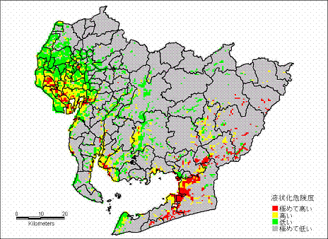 1割程度の山崖が「危険性が高い」となり、県東部の山地から三河山地の南部、