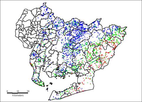 渥美半島の東部から豊橋市、県東部の河川沿い、三河湾沿岸の一部、濃尾平野の南西部で、