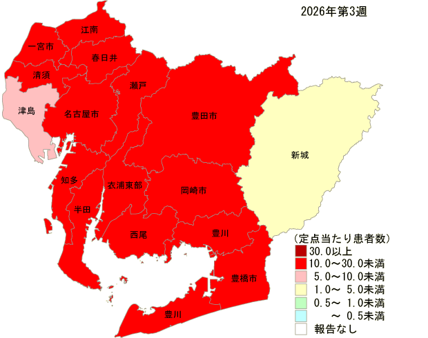 保健所別・定点医療機関当たりのインフルエンザ報告数マップ