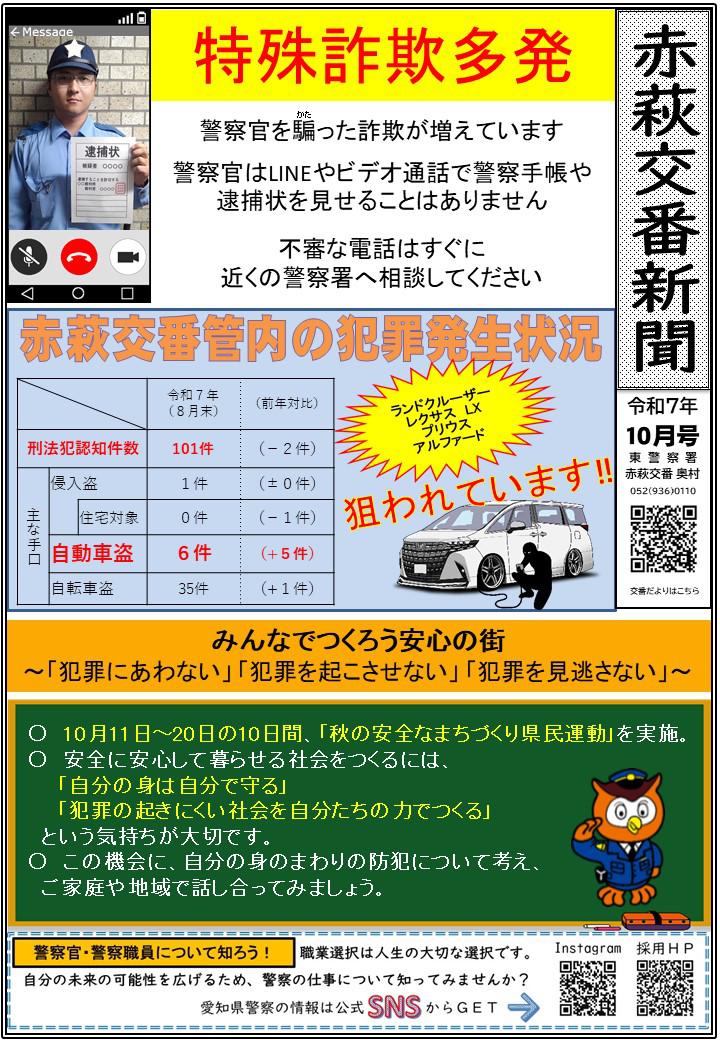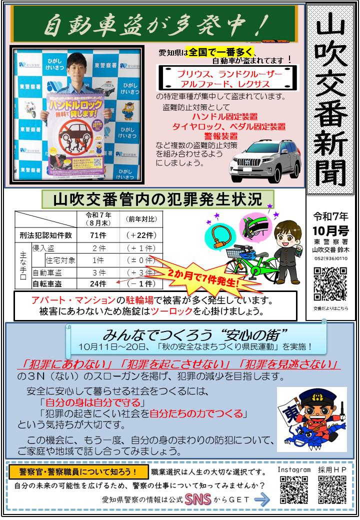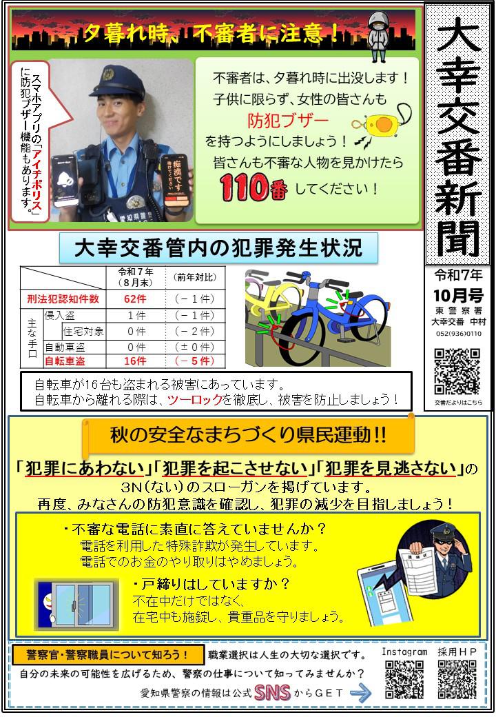交番のお巡りさんが作成した交番新聞や交番速報、東地域安全だよりを掲載します。