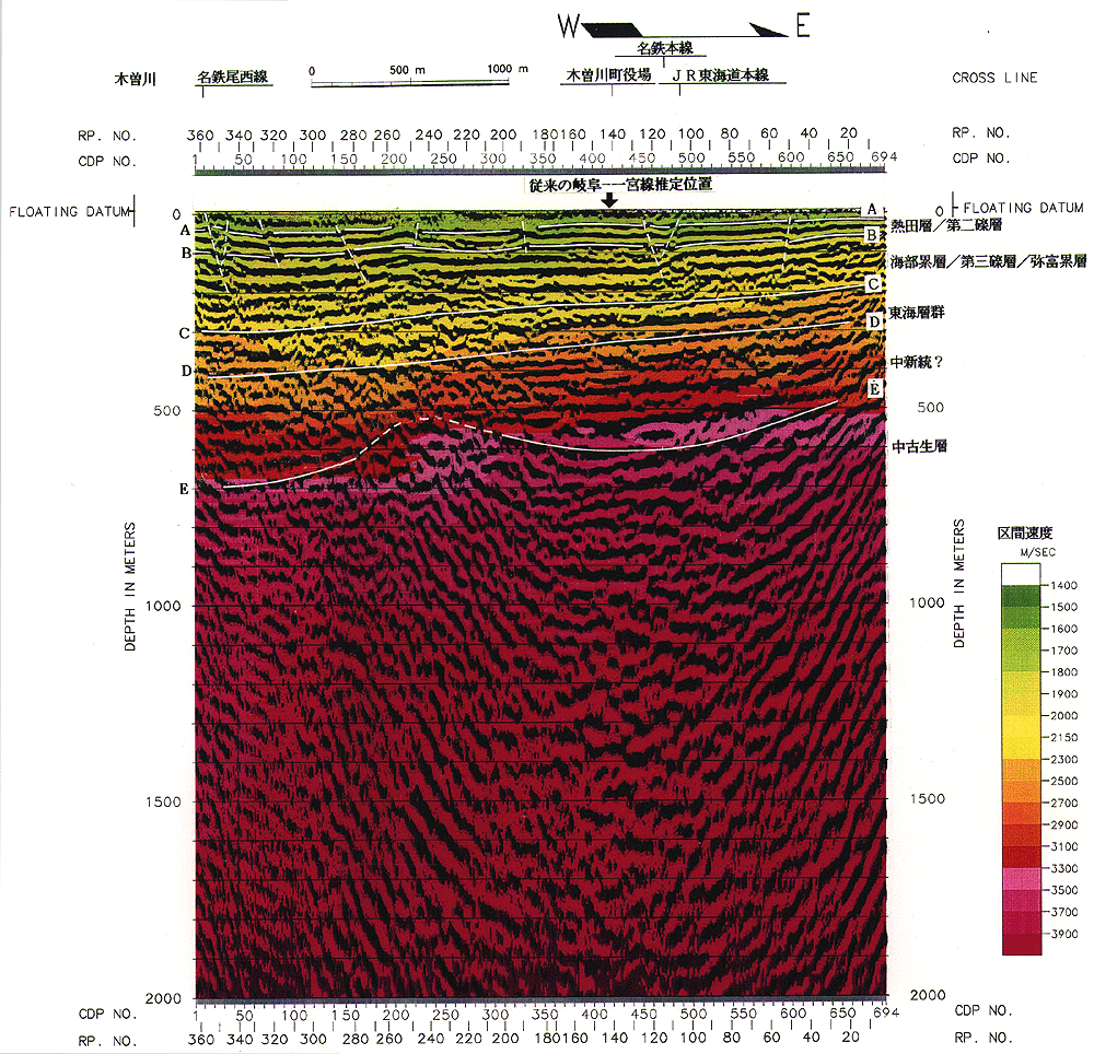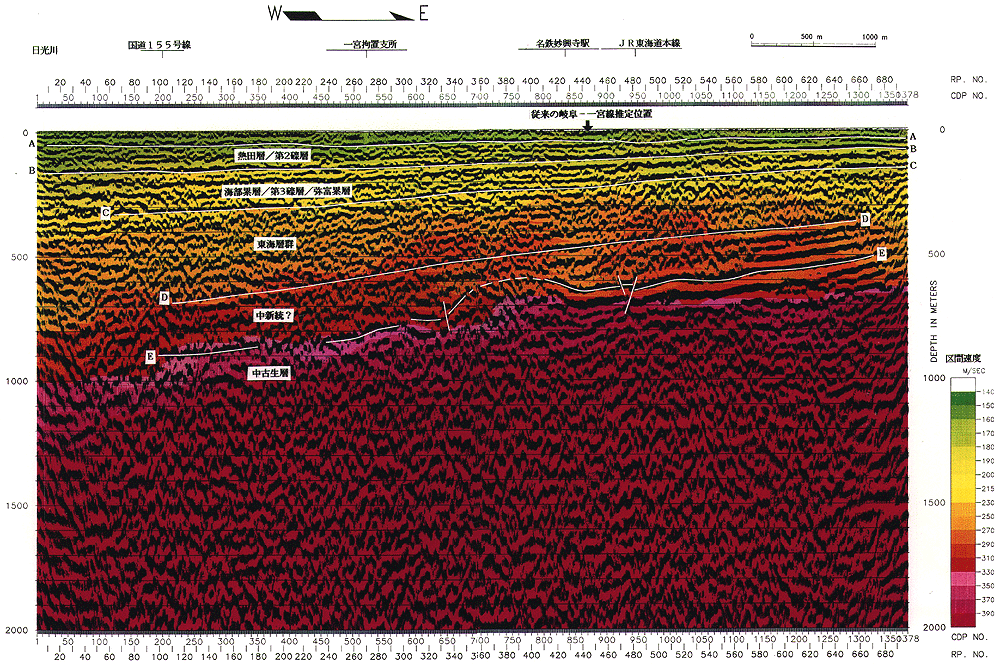 なお、探査結果による地表付近での地層の不連続や、水準点変動、地表地形、地盤沈下量がこの付近を境界として変化し、濃尾地震時の被害集中を始め遺跡には地震痕が少なからず発見されていること、さらには軟弱な沖積層が厚く発達していることなどを考慮すると、地震に対する注意は引き続き怠るべきではないと判断される。