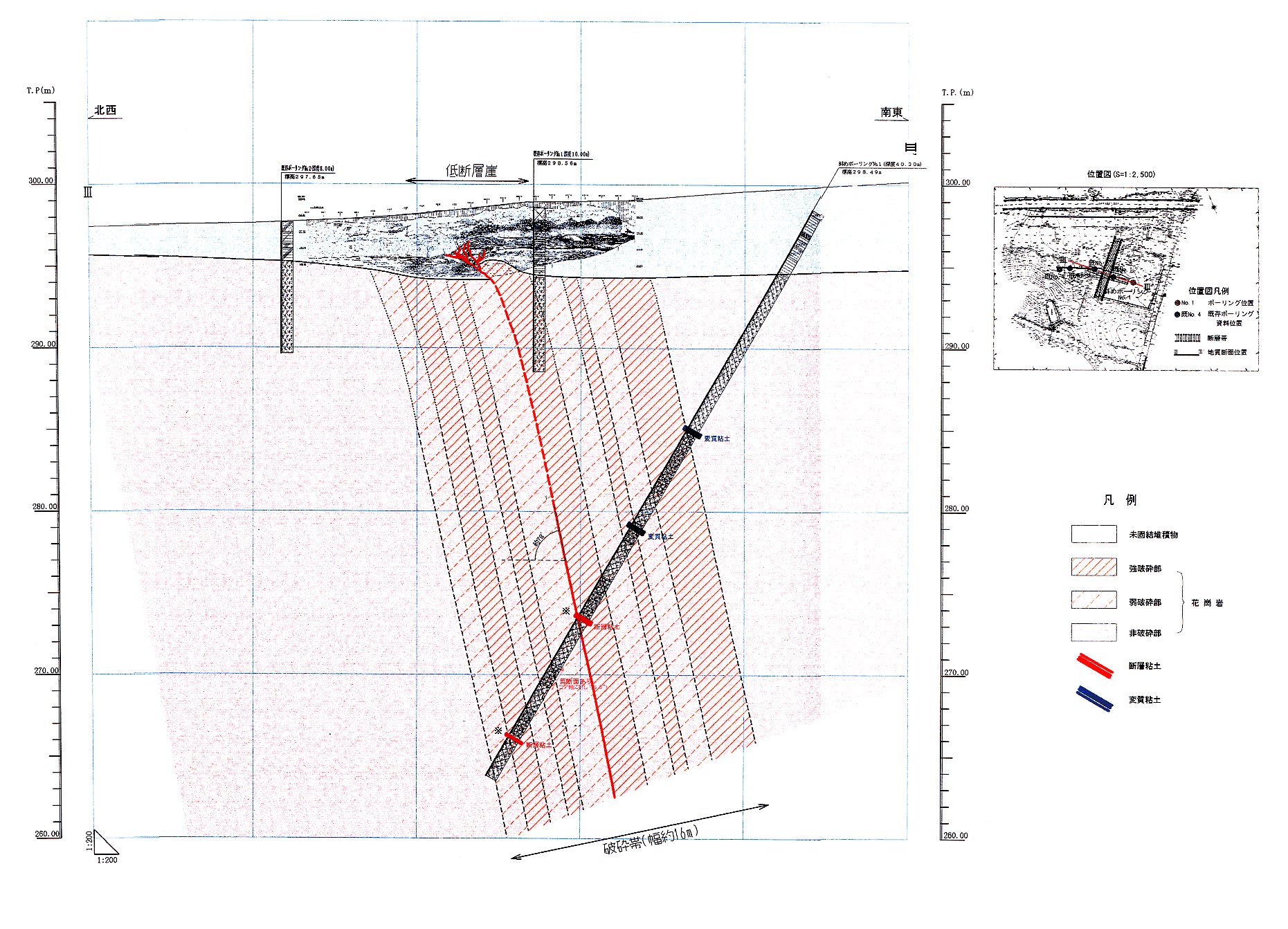 両断層とも数少ないボーリング資料により推定された断層であるが、さらに多くの既存ボーリング資料を再解析した結果では、その付近に地層の不連続は認められなかった。