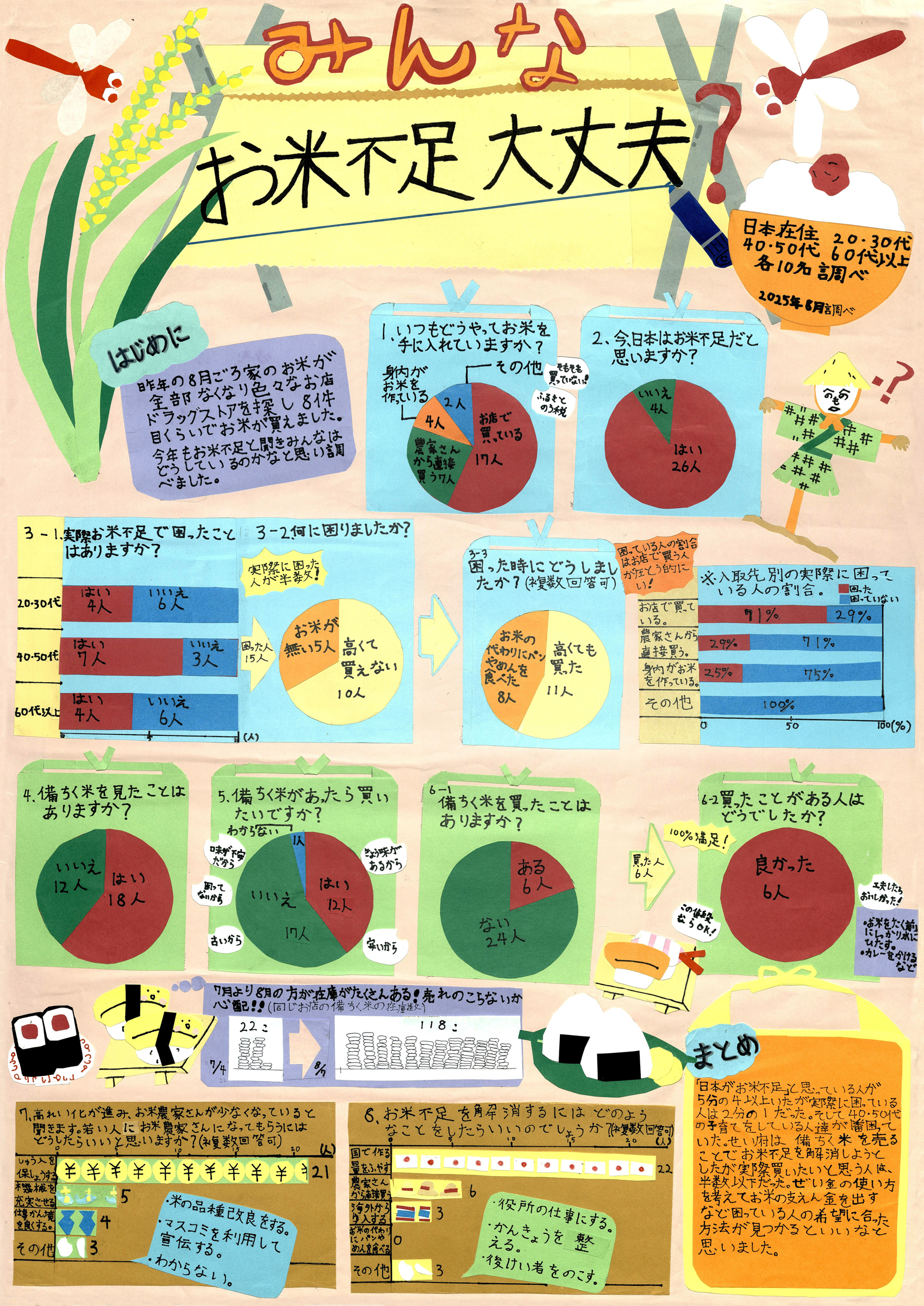 お米が社会問題となった今年、お米と人々の暮らしのつながりを考えるために、「お米の大切さ」についてアンケートを行いました。米不足や価格高騰が人々の暮らしに影響していることが分かりました。 |