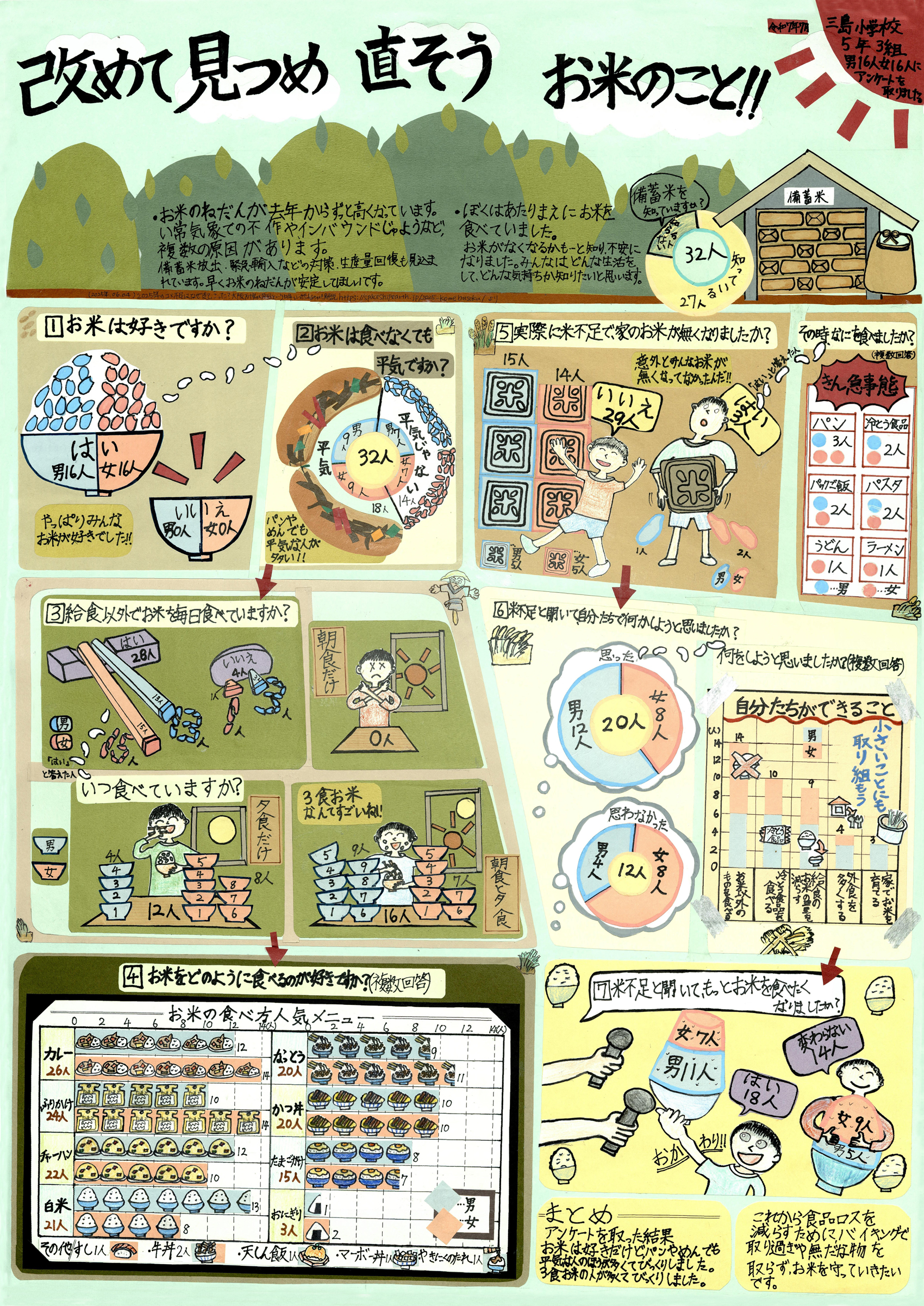質問を重ねながら知りたいことに近づいていく構成に工夫があり、まとめ方も丁寧です。米作り体験を通して未来の食について考えている点が心に残る作品です。 |