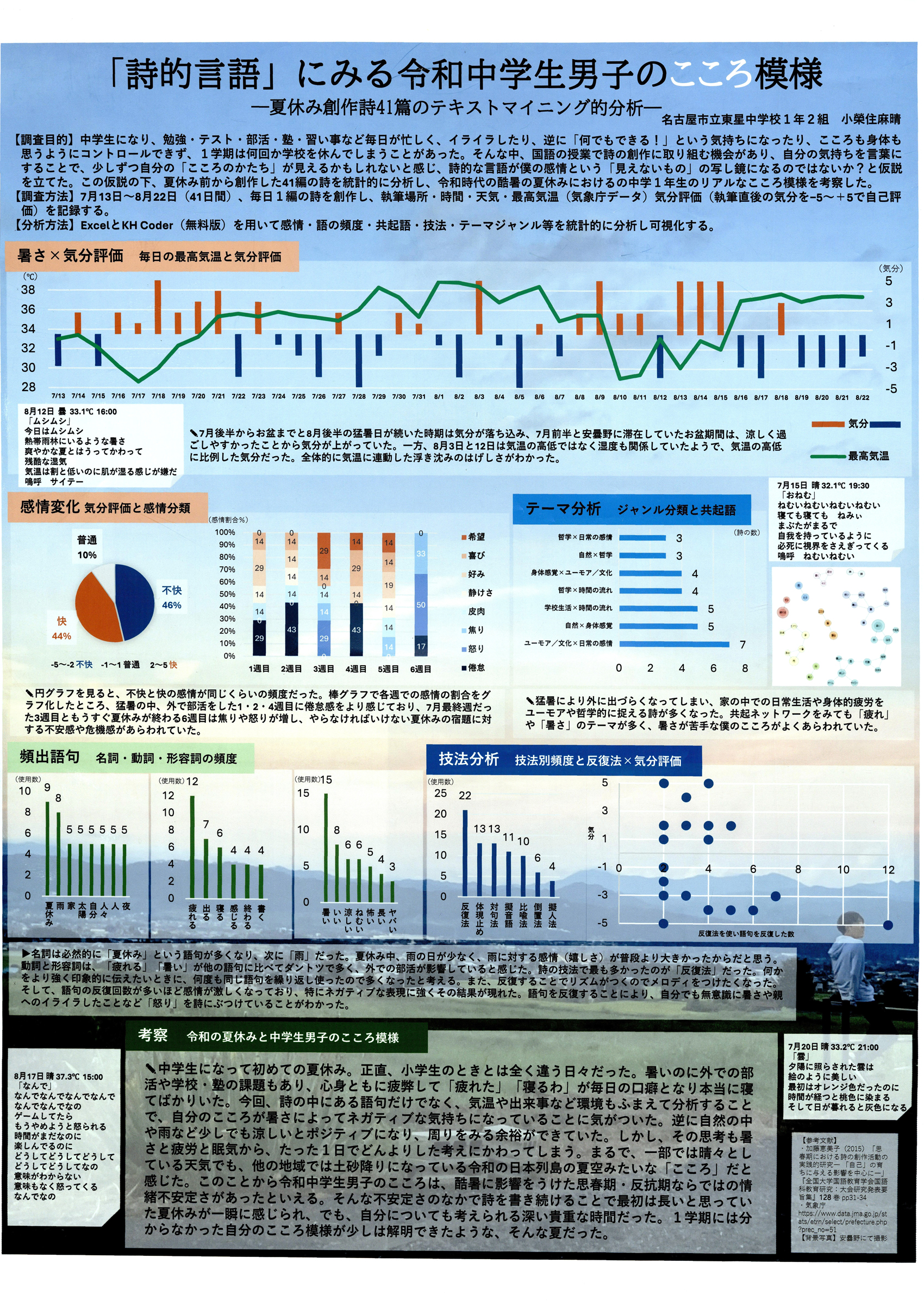 テーマ | 「詩的言語」にみる令和中学生男子のこころ模様-夏休み創作詩41篇のテキストマイニング的分析- |